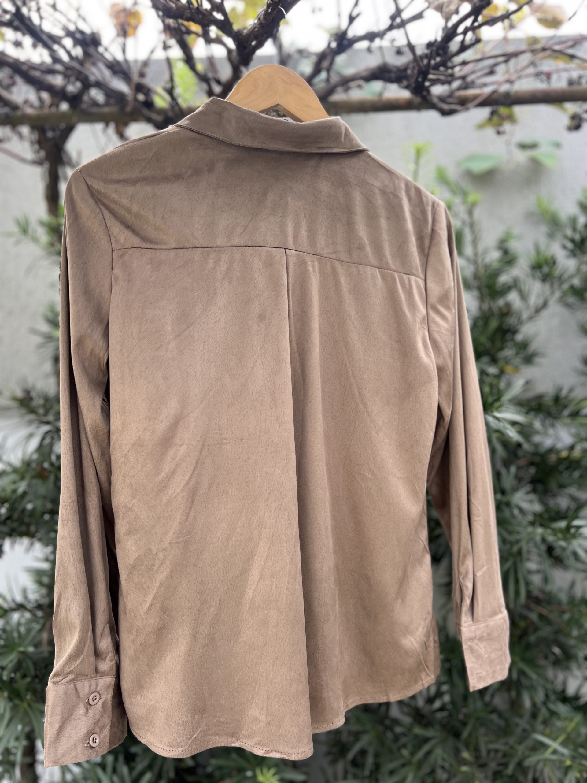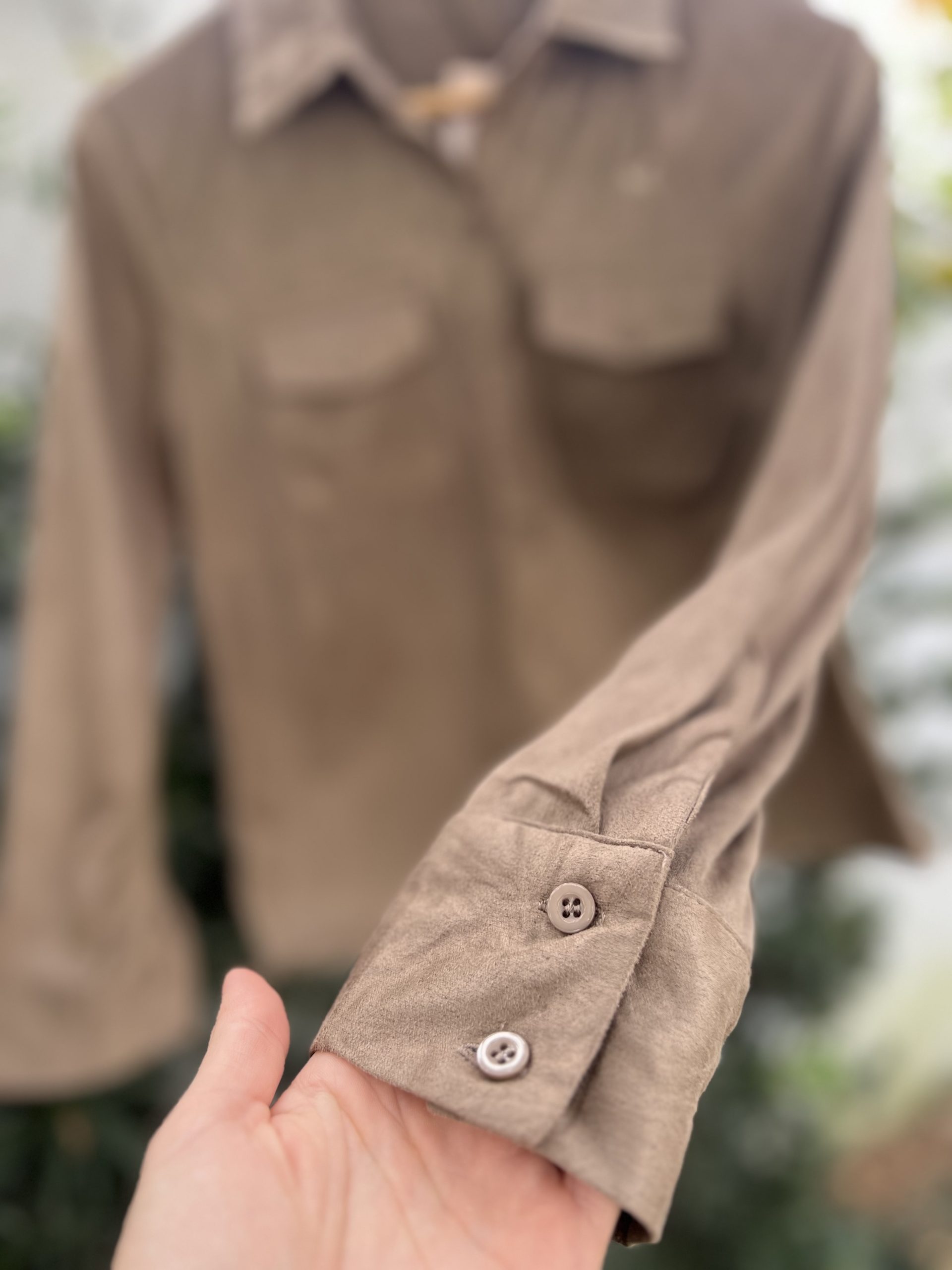 Nossa Camisa é confeccionada em suede, uma espécie de tecido que imita camurça natural ou veludo.